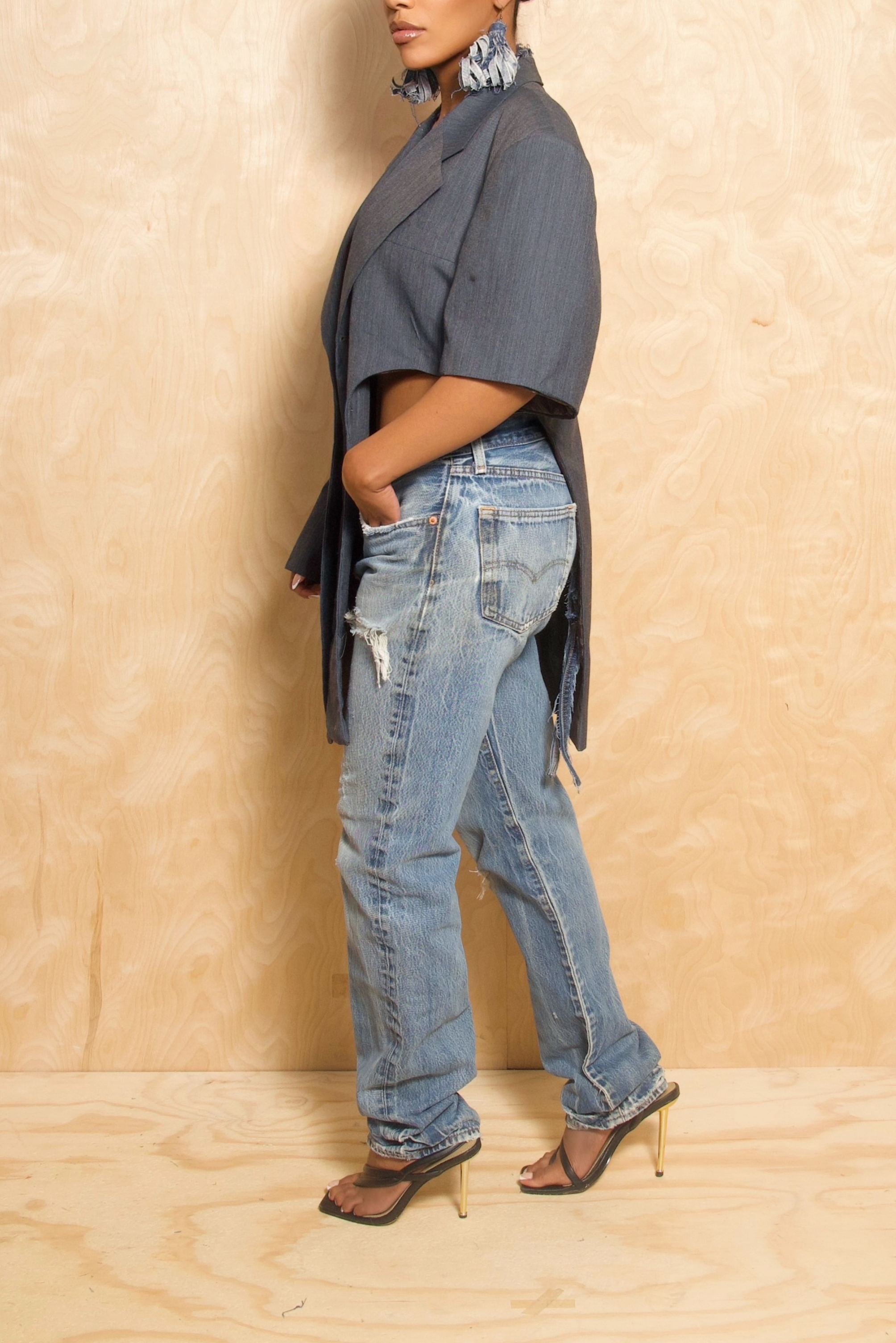 *Blue/Gray Cut out Blazer (L/XL) - FINAL SALE