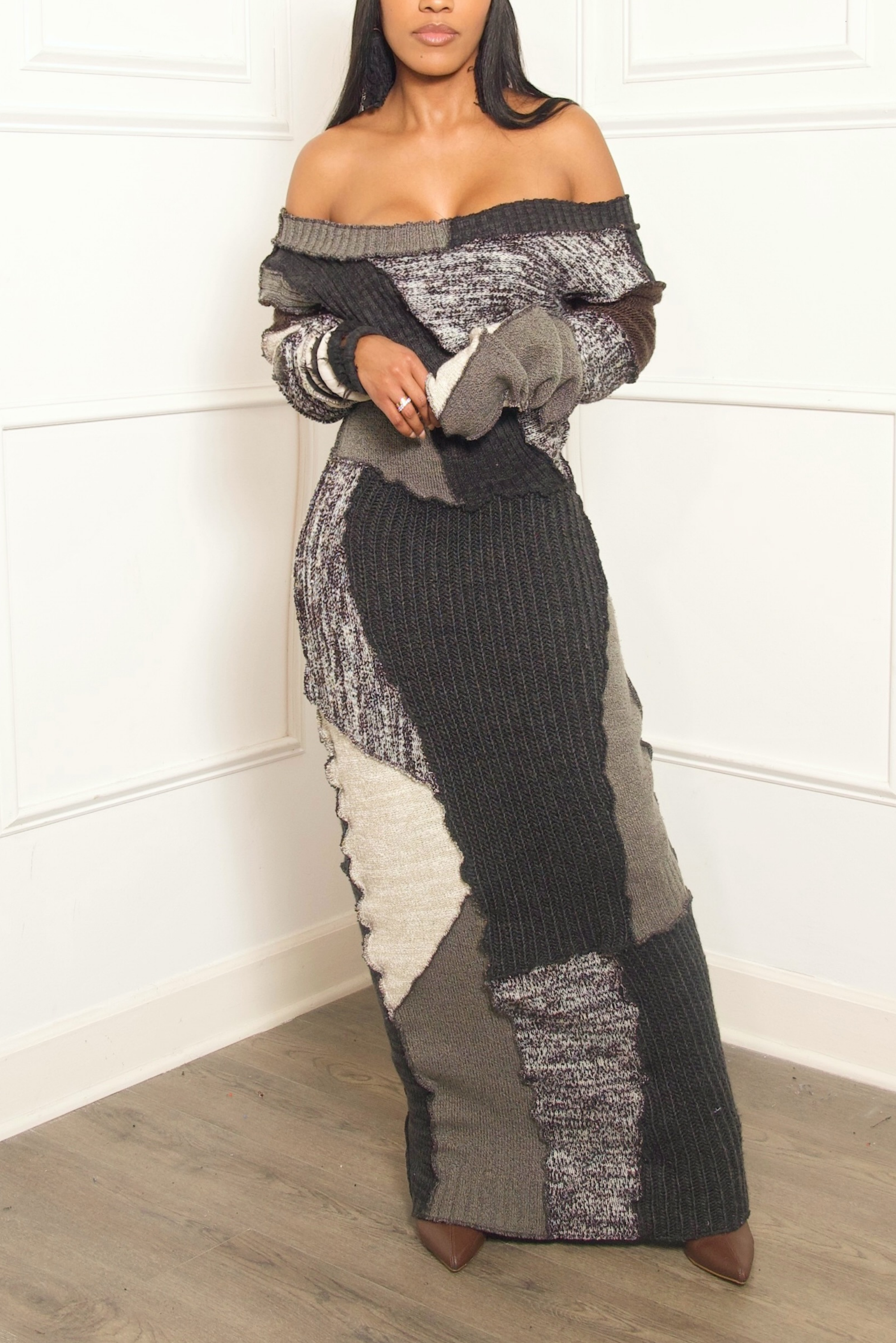 *Charcoal/Grey Upcycled Patchwork Sweater Maxi Dress (M/L)
