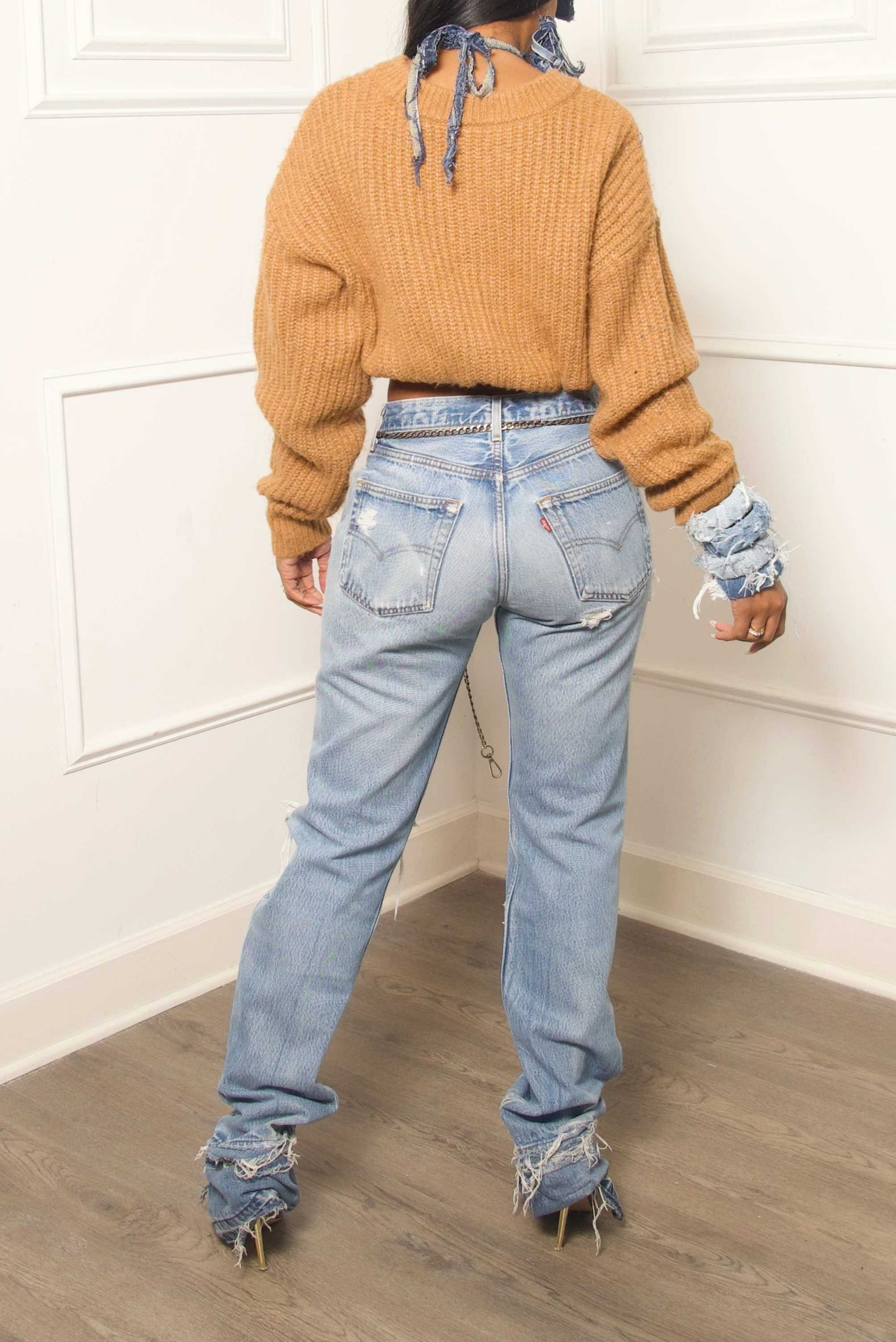 *Cocoa Brown Ribbed Upcycled Knit Sweater Sweatshirt
