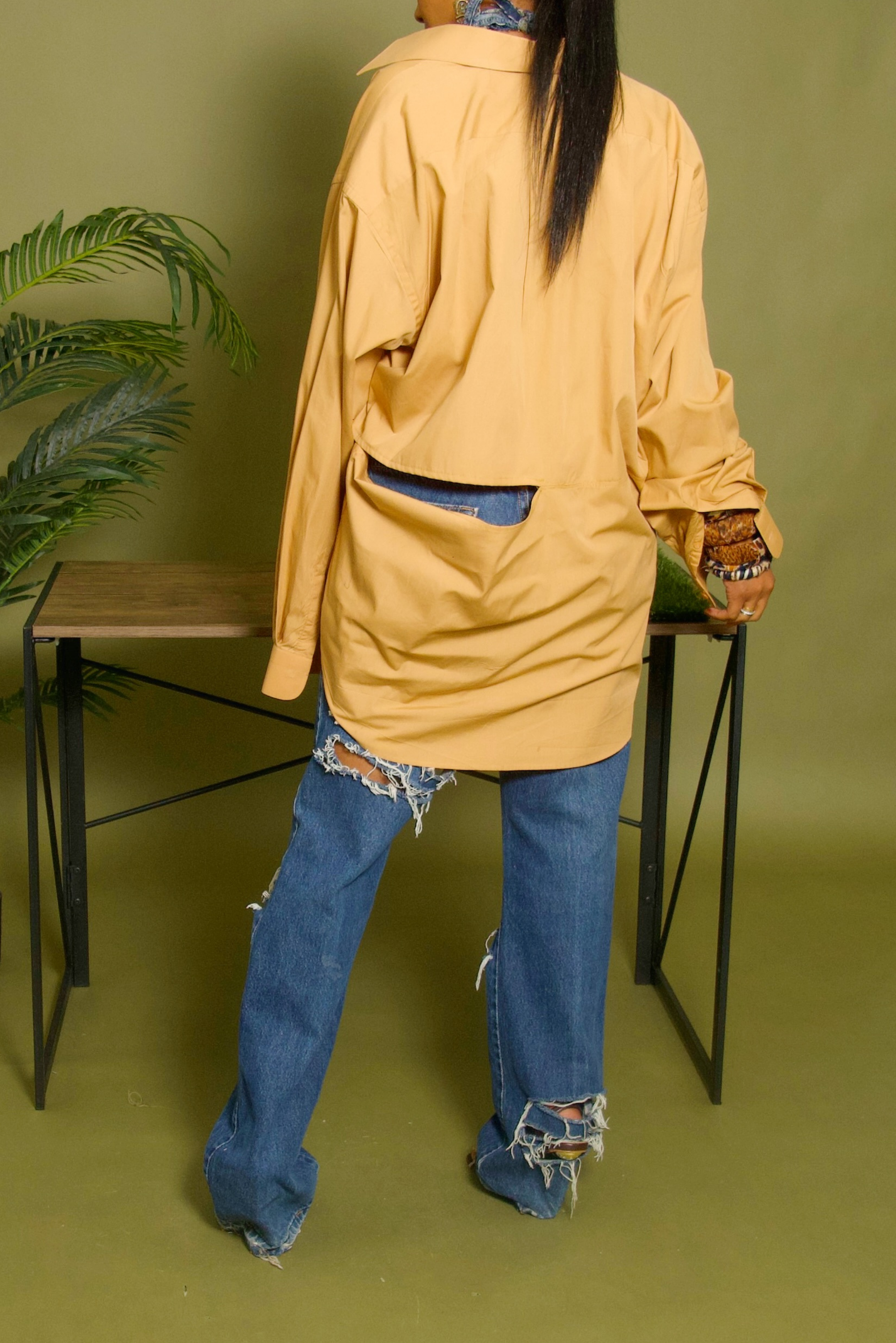Golden Orange cut off boyfriend button up shirt
