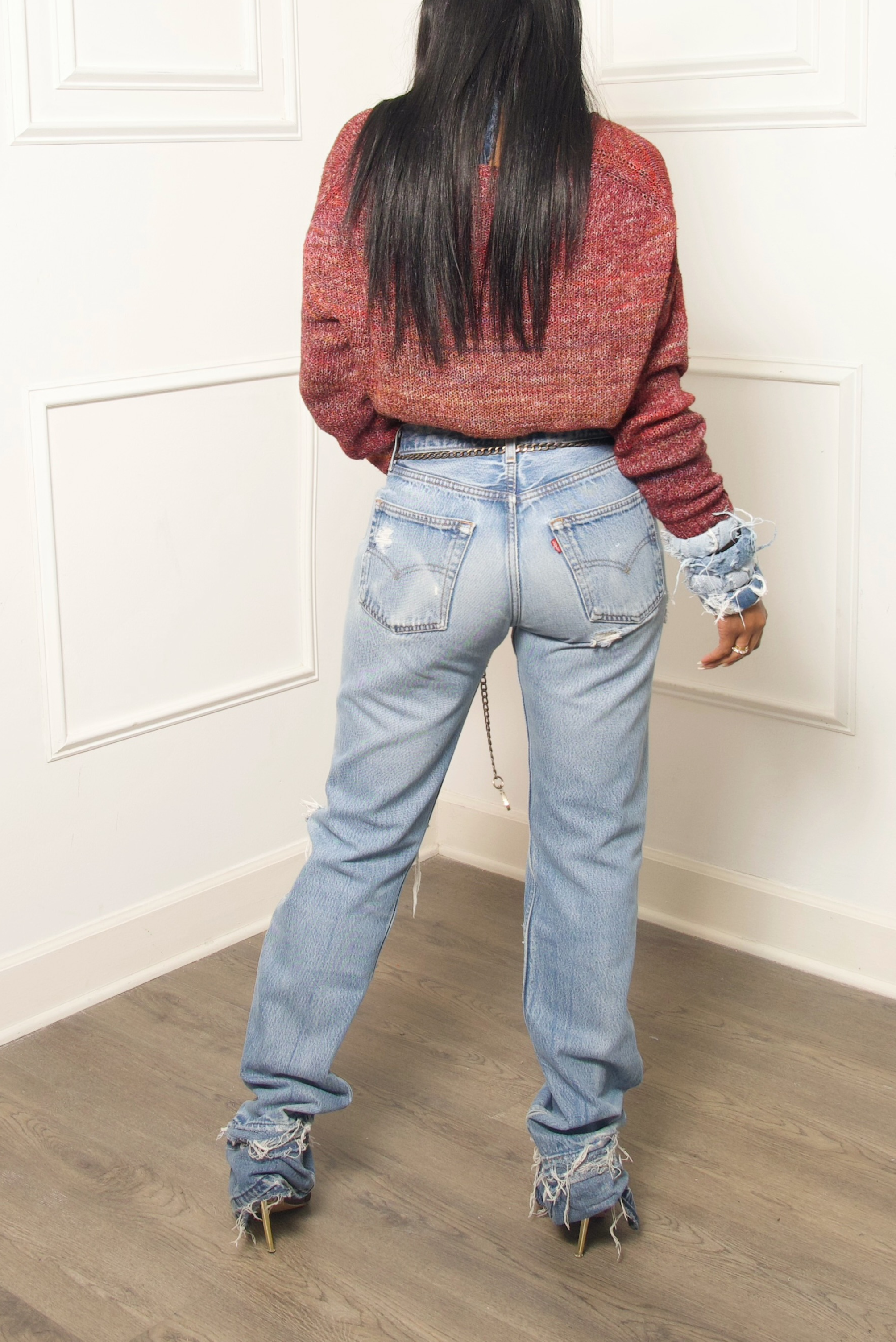 Handmade from vintage sweater remnants, this wine red marled knit sweatshirt offers depth, texture, and individuality. Crafted in the USA, it reflects a commitment to upcycling and ethical production. Each piece showcases natural variations in marled yarns, making every sweatshirt one of a kind. The relaxed silhouette provides comfort while maintaining an elevated, artisanal look. This garment requires more than ten hours of detailed hand construction. It is designed for those who value originality and sustainability.