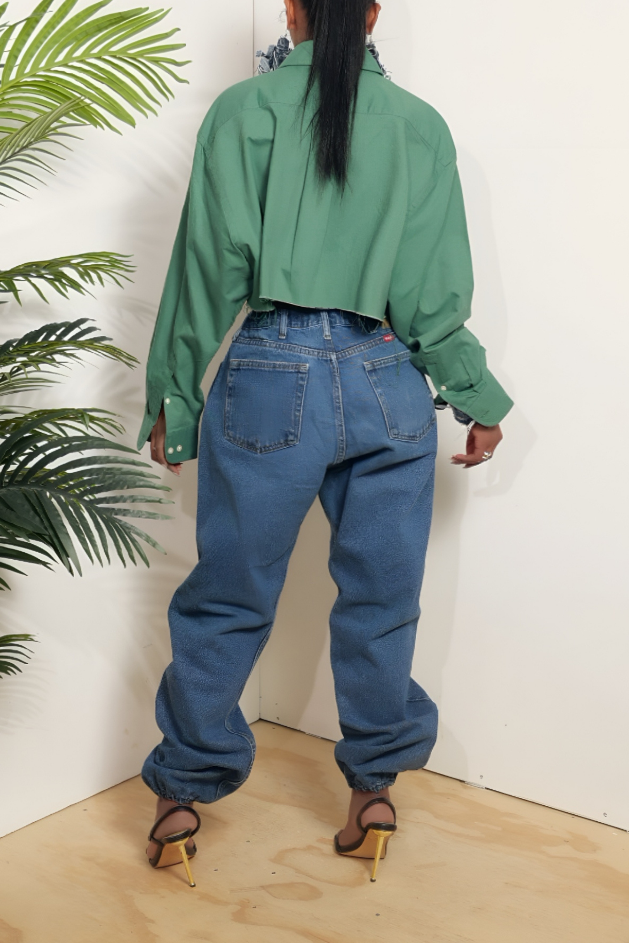 *Dark Denim Elastic Waist Jogger Jeans S/M - FINAL SALE