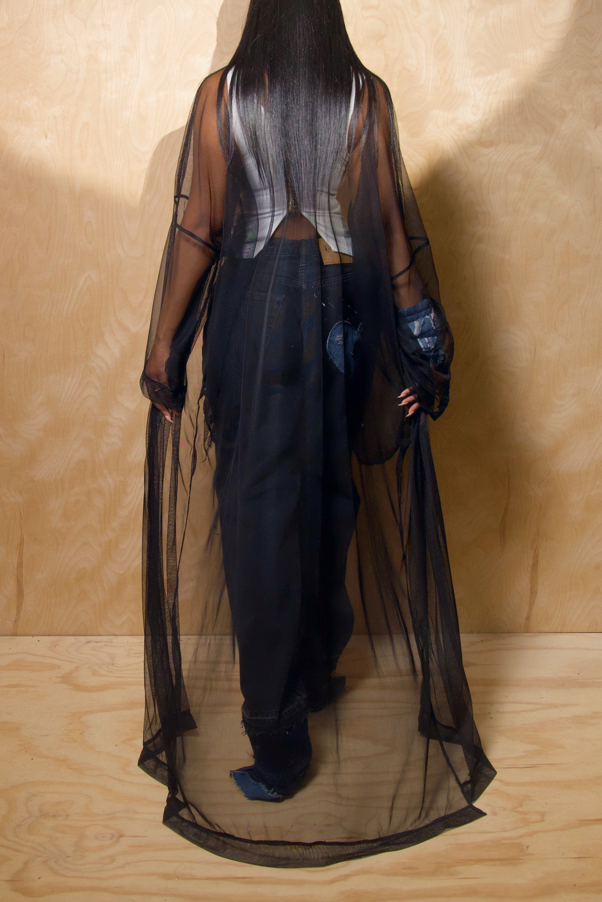 Black Sheer bell sleeve kimono