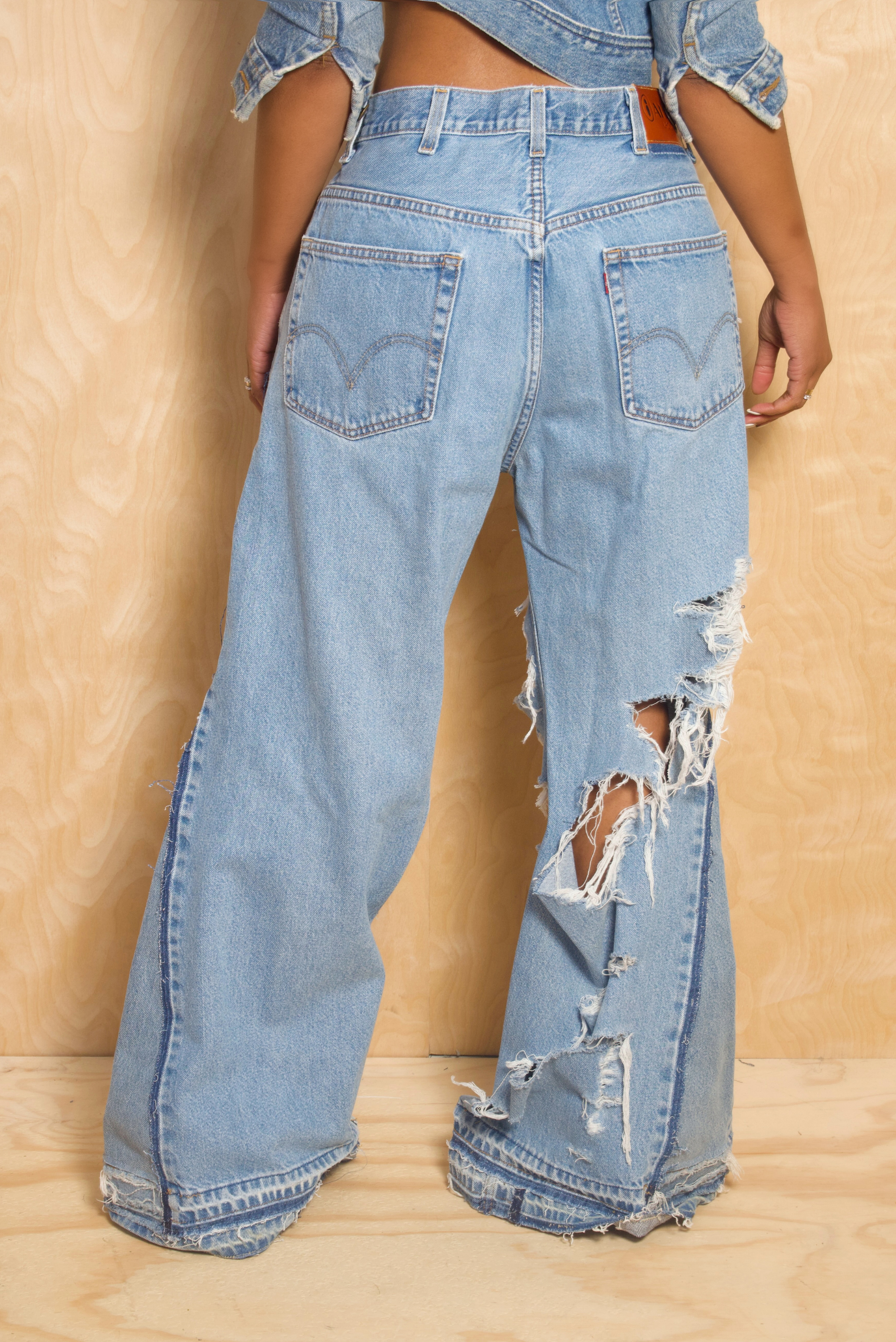 Channel that effortless grunge aesthetic with the Wide Leg Super Distress Hole Light Levi Jeans by iAMMI. These upcycled Levi’s are fully customized with extreme distressing and oversized holes, giving each pair a raw and authentic edge. The light wash enhances the vintage texture while keeping the style versatile and easy to wear. Designed for maximum comfort and individuality, they’re perfect for streetwear lovers and denim collectors alike. Each piece tells its own story through handcrafted detail.